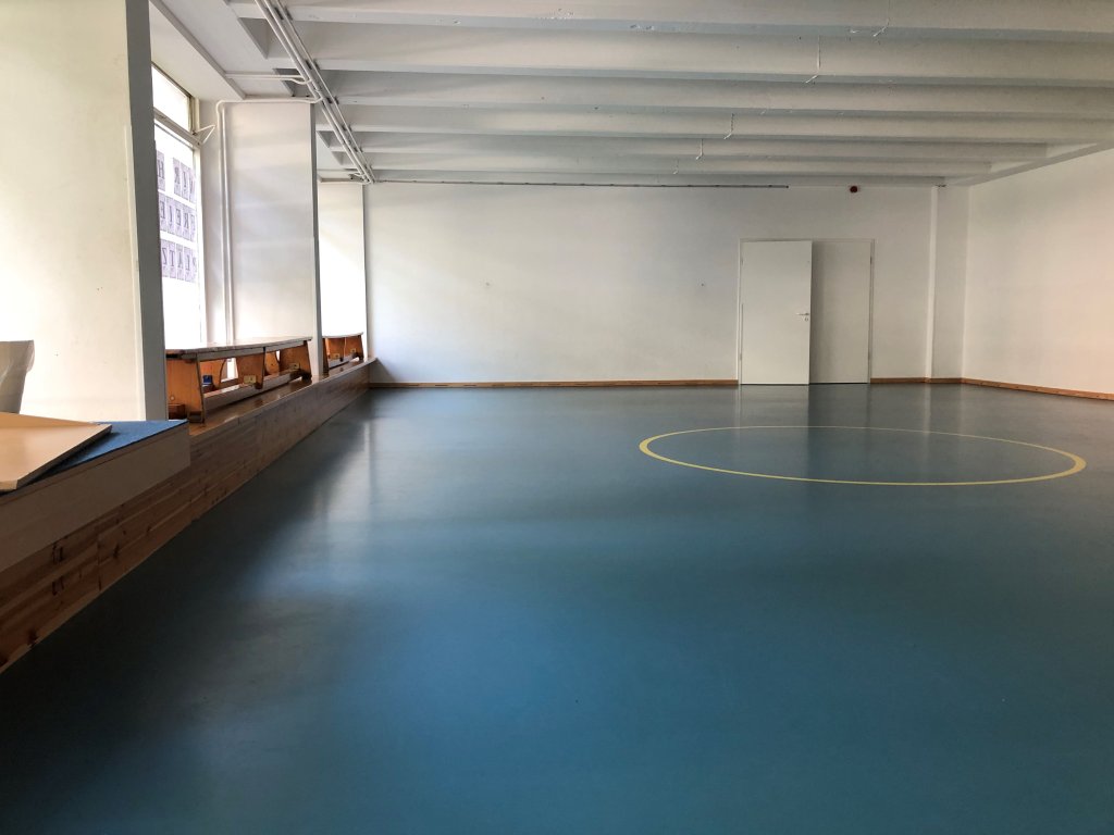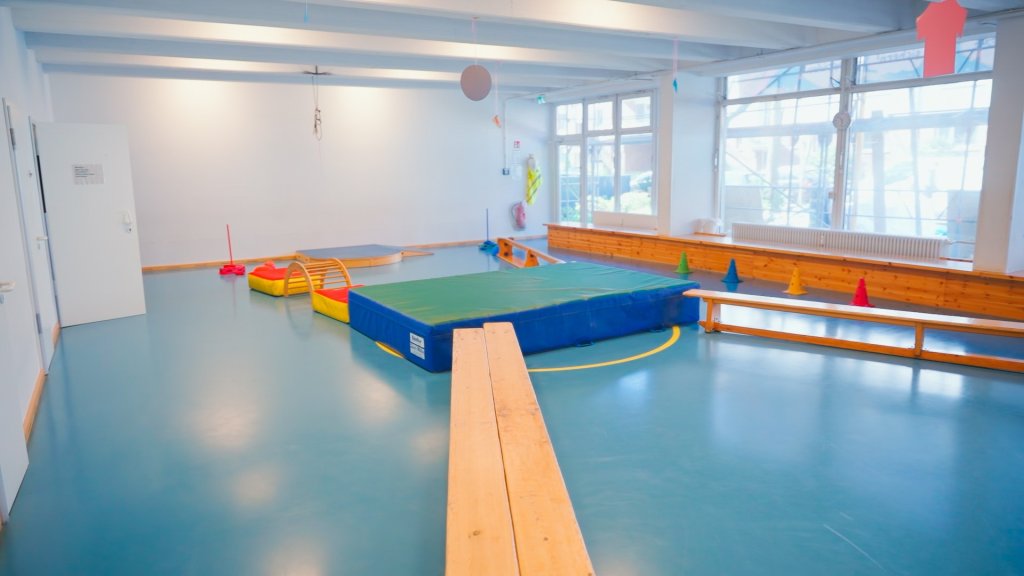 Sie ist ideal für Sport- und Bewegungsgruppen jeder Art, Yoga, Eltern-Kind-Kurse, Turngruppen, Tanz-, Fitness- oder Pilates-Kurse, Fortbildungen und noch viel mehr. Eine vielfältige Grundausstattung ist vorhanden: Matten, Bobbycars, Seile, Podeste, Sprungkissen, Bälle, verschiedene Schaukeln und alles für einen kindergerechten Bewegungsparcours.